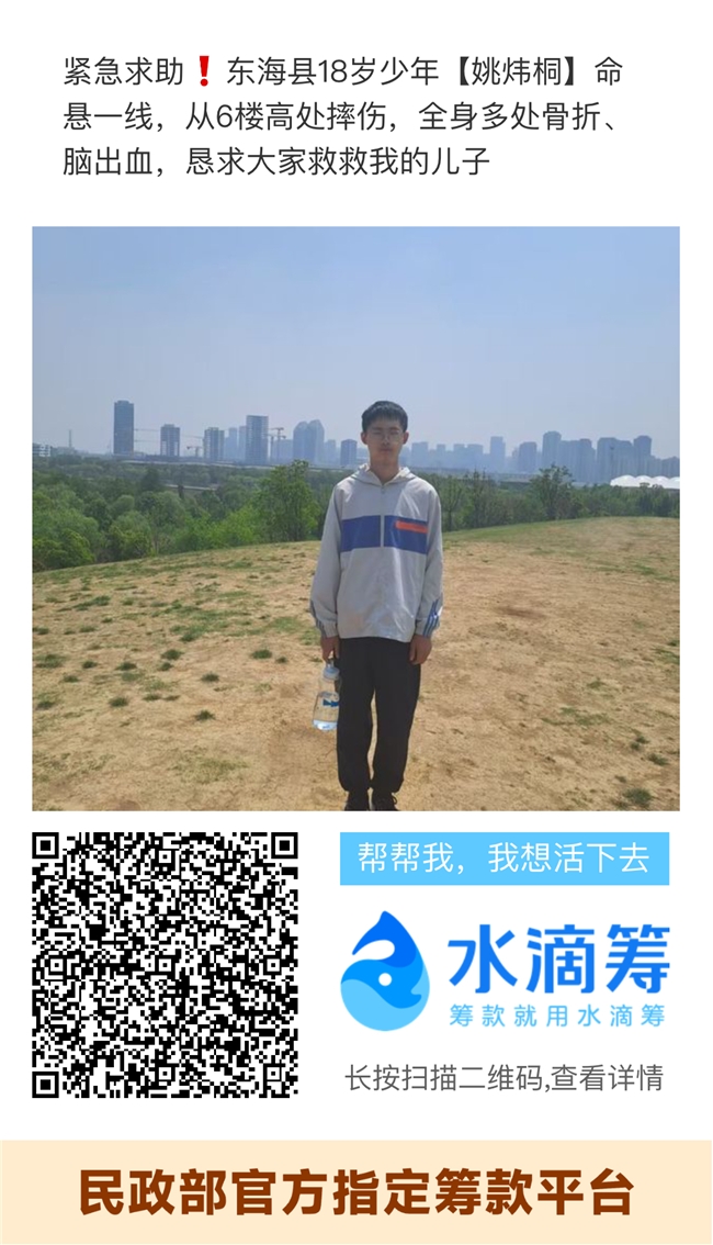 炜桐才18岁啊,他的生命才刚刚开始。他还没有上大学,没有谈恋爱,没有去看过外面的世界。他还有那么多的梦想没有实现,还有那么多的爱没有给予。他是我最小的孩子,是我心头最柔软的牵挂。恳请各位好心人,帮帮我们这个摇摇欲坠的家。您的每一次转发,每一笔捐款,都是给炜桐的生命注入一份希望。十八岁的星光,不该就此熄灭。求求你们,救救我的孩子!让我们一起,等他醒来,等他重新站在阳光下,笑着喊我们一声"爸爸、妈妈"。愿好人一生平安。