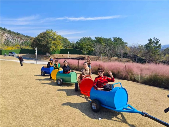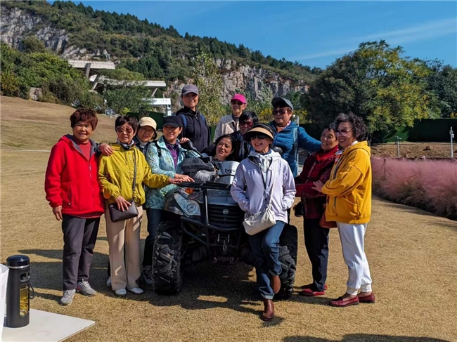 上午8时许,社区工作人员早已在集合点等候,为参与活动的50余名老年居民准备了饮用水、常用药品等物资。在社区志愿者的陪同下,老人们乘坐大巴车前往江宁矿坑公园,开启重阳登高之旅。秋日的矿坑公园层林尽染,空气清新,老人们沿着蜿蜒的步道拾级而上,时而驻足欣赏山间美景,时而与邻里闲话家常,脸上洋溢着轻松愉悦的笑容。