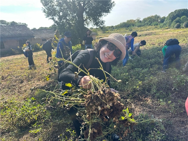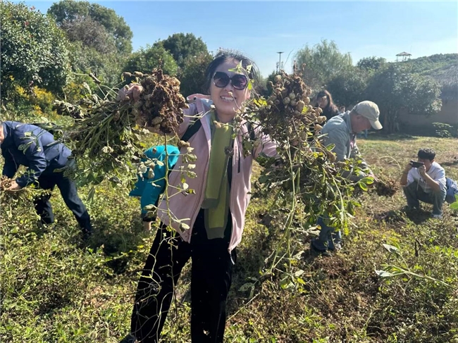“快看,我挖到一个大红薯!”65岁的李阿姨举着刚出土的红薯,像个孩子般兴奋地向同伴展示。砍甘蔗的区域里,老人们手脚利索,不一会儿就收获了一捆捆清甜的甘蔗;拔花生的田垄上,大家弯着腰,轻轻拔出带着泥土的花生植株,抖落泥土后,饱满的花生果便显露出来。虽然手上沾了泥土、额头渗了汗珠,但老人们的脸上都洋溢着丰收的喜悦,仿佛回到了年轻时的田园岁月。