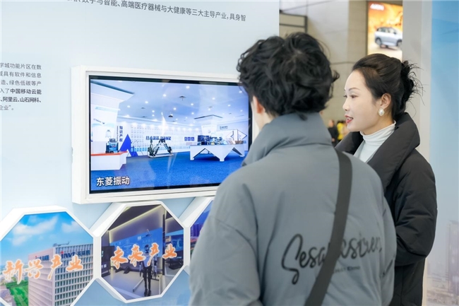 太湖科学城功能片区锚定国家级科学城、国家级旅游度假区“双国”目标,致力于构建“3+N”现代化产业体系。轻触墙上的“主导产业”“新兴产业”“未来产业”互动灯箱,对应的企业视频与成果便跃然眼前。不少旅客围在屏幕前,边看边感叹:“原来这里聚集了这么多高精尖企业!”