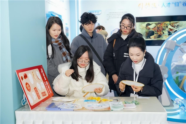 最热闹的当数苏绣团扇DIY体验区!穿针引线之间,不少初次接触苏绣的旅客都玩得不亦乐乎。“苏绣的针法竟然有这么多讲究!”“没想到绣一朵小花也不简单呢!”——原来,这座科技之城也藏着指尖上的千年美学。苏绣作为中国四大名绣之一,是国家级非物质文化遗产,而位于太湖科学城功能片区的镇湖街道,更是苏绣的主要发源地,被誉为“中国民间(刺绣)艺术之乡”。